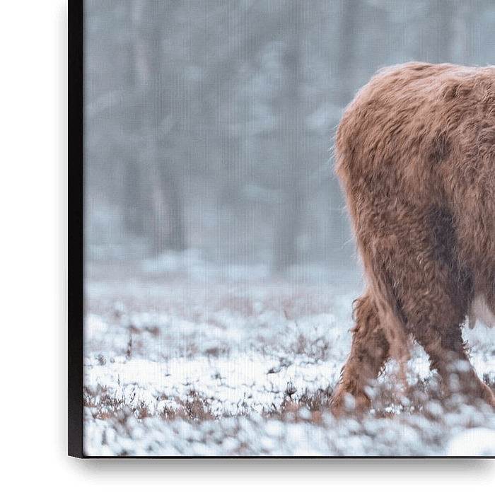 Bestelle dieses Landschafts-Wandbild Porträt eines schottischen Highlanders im Schnee während des Winters von Sjoerd van der Wal Fotografie als Reproduktion auf Leinwand, Alu-Dibond, als Poster, Fototapete oder Acrylglasbild.