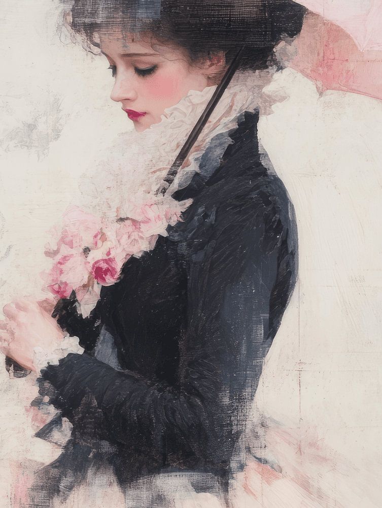 Stellen Sie sich eine sanfte Frühlingsbrise, einen klaren blauen Himmel und einen Hauch von Romantik in der Luft vor. Dieses Gemälde versetzt Sie in eine Zeit zurück, in der das Leben langsamer verlief und jeder Tag ein Abenteuer war. Mit einem zarten Sonnenschirm als einzigem Schutz vor der Sonne strahlt diese Dame unaufdringliche Eleganz aus, eingehüllt in weiche, verträumte Farbtöne. Dieses Kunstwerk ist nicht nur ein Dekorationsstück - es ist ein Fenster in eine Welt voller Anmut und Ruhe. Hängen Sie es auf und tauchen Sie täglich in einen Moment purer zeitloser Schönheit ein. Perfekt für alle, die Nostalgie mit einem Hauch von verträumtem Charme lieben!