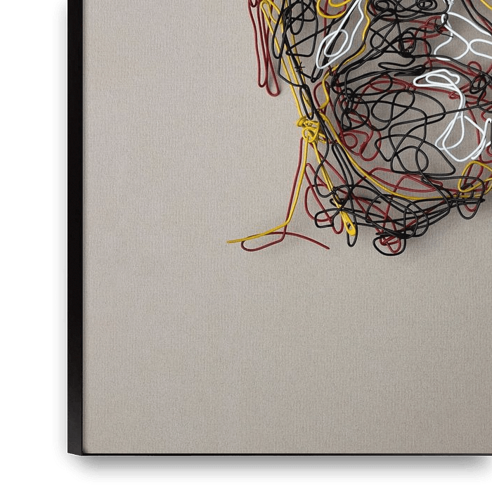 Abbildung einer einzigartigen dreidimensionalen grafischen "Skizze" aus Metalldraht. Die verschiedenen Farben des Metalls, die übereinander liegen, erzeugen eine spannende Tiefenwirkung. Das lockere Skizzengefühl bestimmt die Atmosphäre des Bildes.