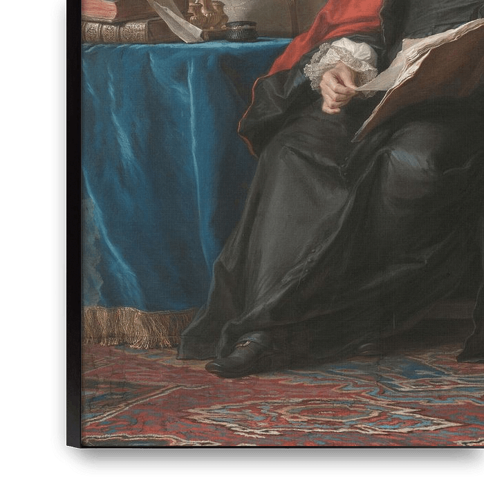 Gabriel Bernard de Rieux, der jüngste Sohn eines überaus erfolgreichen Finanzierers, trägt das Gewand seines Büros als Präsident des zweiten Untersuchungsgerichts im Pariser Parlament. Aus einem großen Wälzer, der auf seinem Schoß gehalten wird, hebt er ein Blatt Papier. Maurice-Quentin de La Tour wollte die Gelehrsamkeit, den Reichtum und den Status des Porträtierten erklären und stellte de Rieux in sein Arbeitszimmer, umgeben von modischen und teuren Objekten. Hinter ihm befindet sich ein reich verziertes Sieb; auf einem mit blauem Samtstoff bedeckten Tisch liegen Bücher, Papiere und ein Tintenfass mit einer Feder. Neben dem Tisch steht eine Kugel und ein türkischer Teppich bedeckt den Boden. Diese Objekte identifizieren den Dargestellten als Kenner feiner und kostbarer Dinge - wie sein Vater, dessen beträchtliches Vermögen de Rieux im Jahr der Entstehung dieses Porträts erbte.