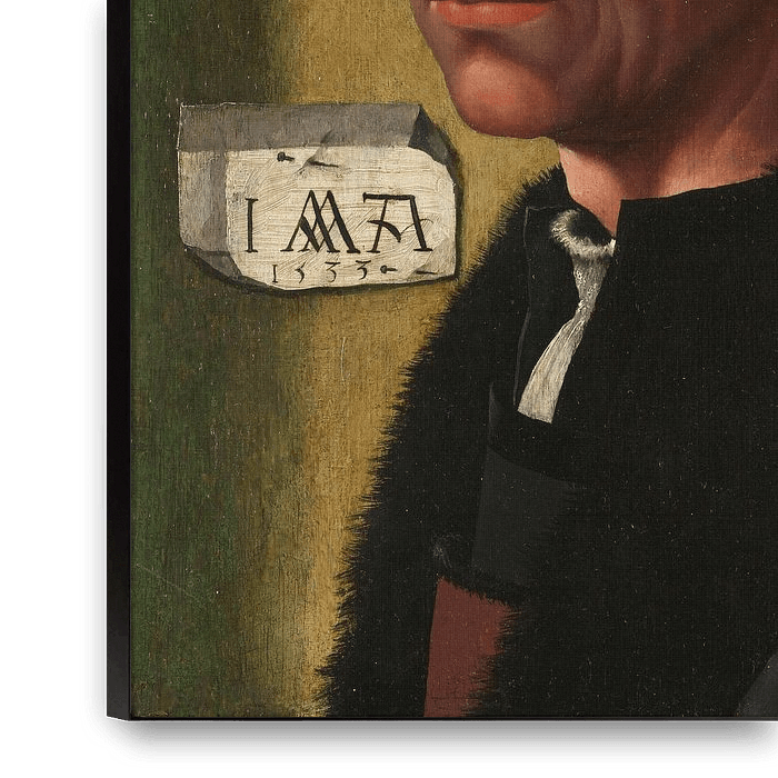 Lange Zeit galt dieses Werk als das früheste bekannte Selbstbildnis in der nordholländischen Malerei, aber es entstand wahrscheinlich nach einem verlorenen Kunstwerk. Solche Porträts veranschaulichen den wachsenden Status von Künstlern. Jacob Cornelisz schaut uns direkt an. Hinter ihm hängt ein Blatt Papier mit dem Jahr 1533 und seinem Monogramm: I W (umgekehrt) v A ('J[acob] W[ar] v[an] A[msterdam]').