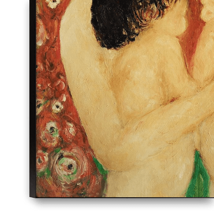 Bestelle dieses Blumen-Wandbild Porträt von Mutter und Kindern, inspiriert von Gustav Klimt. von Ineke de Rijk als Reproduktion auf Leinwand, Alu-Dibond, als Poster, Fototapete oder Acrylglasbild.