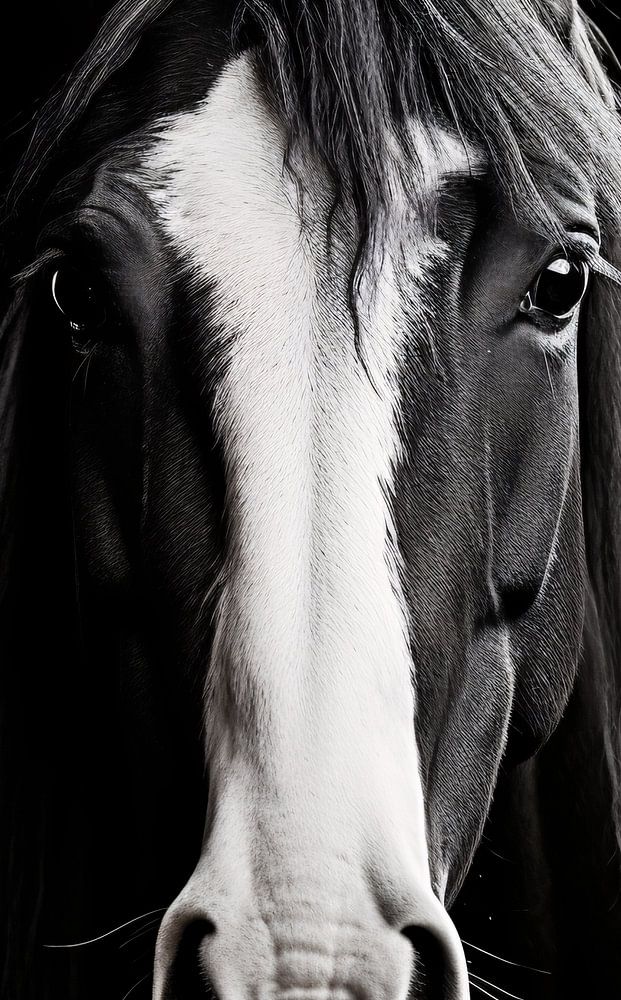 Pferdeportrait in Schwarz-Weiß, Pferdekunst, Pferde-Wohndekoration