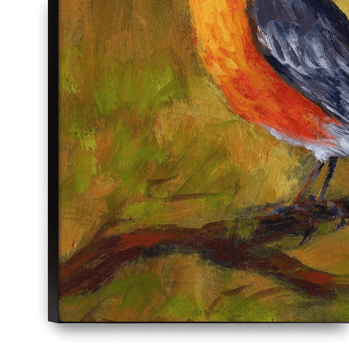 Bestelle dieses Landschafts-Wandbild Portrait einer Wanderdrossel von Karen Kaspar als Reproduktion auf Leinwand, Alu-Dibond, als Poster, Fototapete oder Acrylglasbild.