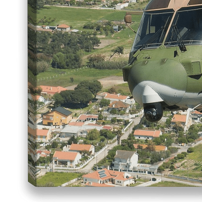 Ein EH101-514 Merlin-Hubschrauber der portugiesischen Luftwaffe, der in der Nähe von Lissabon fliegt.