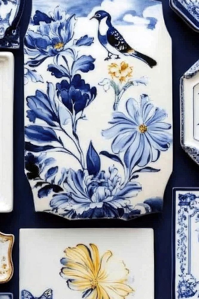 Dieses Kunstwerk zeigt eine sorgfältig zusammengestellte Collage aus klassischen und zeitgenössischen Delfter Keramiktellern, die mit Blumenmustern, Vögeln und verschnörkelten Bordüren verziert sind. Die Kombination aus Kobaltblau und goldgelben Akzenten schafft ein lebhaftes visuelles Spiel, das sowohl Nostalgie als auch Raffinesse ausstrahlt. Das Werk fängt die reiche Tradition der holländischen Töpferkunst in einer modernen Komposition ein, die sich perfekt als stilvoller Wandschmuck eignet.