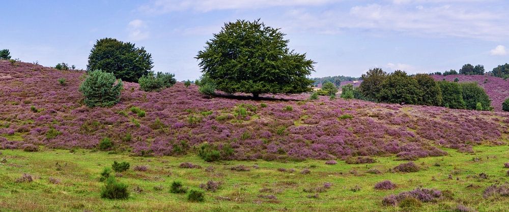 Jedes Jahr im Sommer, etwa Mitte bis Ende August, blühen in den Niederlanden Heidekrautpflanzen. Und so ist es auch auf der Posbank, wo man die schönen lila Hügel bewundern kann.