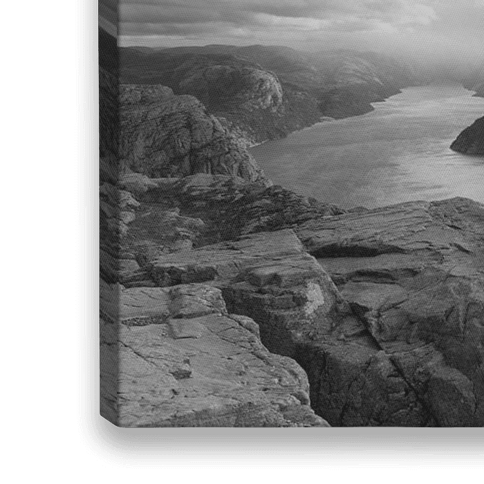 Panoramisches Foto des berühmten Felsens der Preikestolen in Norwegen. Die Wolken und der Regen wechseln sich mit der Sonne ab, so wie das Wetter in Norwegen sein sollte, wo die Schönheit der Landschaft wunderschön zum Ausdruck kommt.