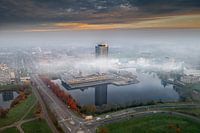 Luftaufnahme des in Nebel gehüllten Provinzhauses von Noord-Brabant.