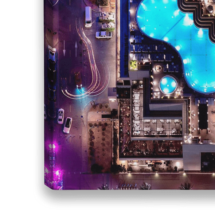 Purpurrotes und blaues Pool auf einer Dachspitze