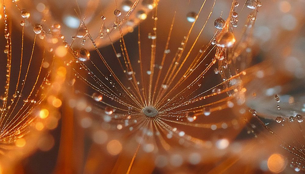 Pusteblume in Makro mit Regentropfen