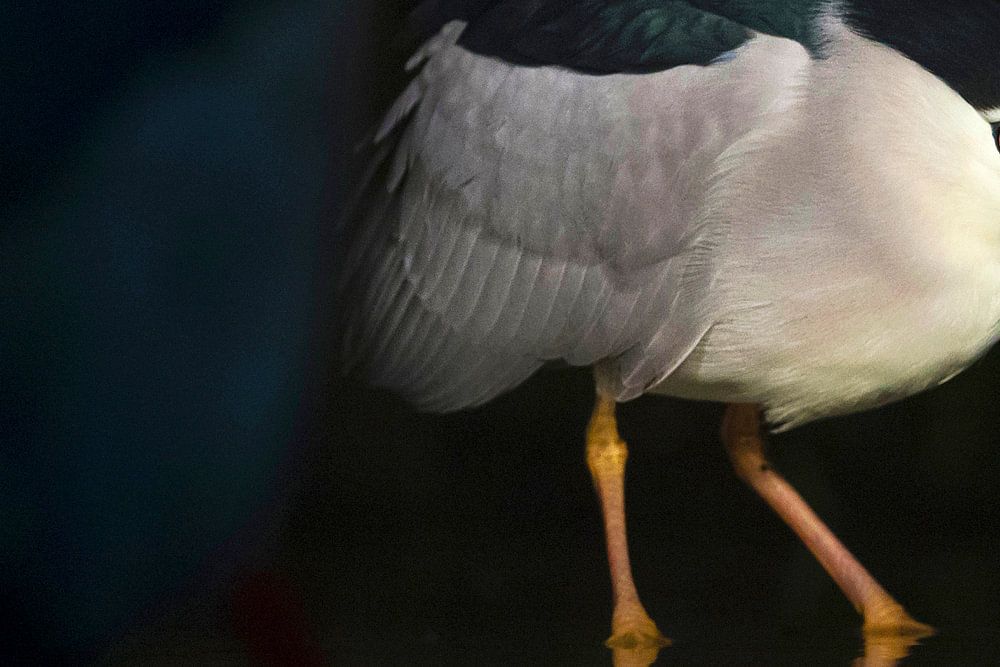 Quacksalber (Nycticorax nycticorax) beim nächtlichen Fischen mit dem zweiten Quacksalber vorne links.