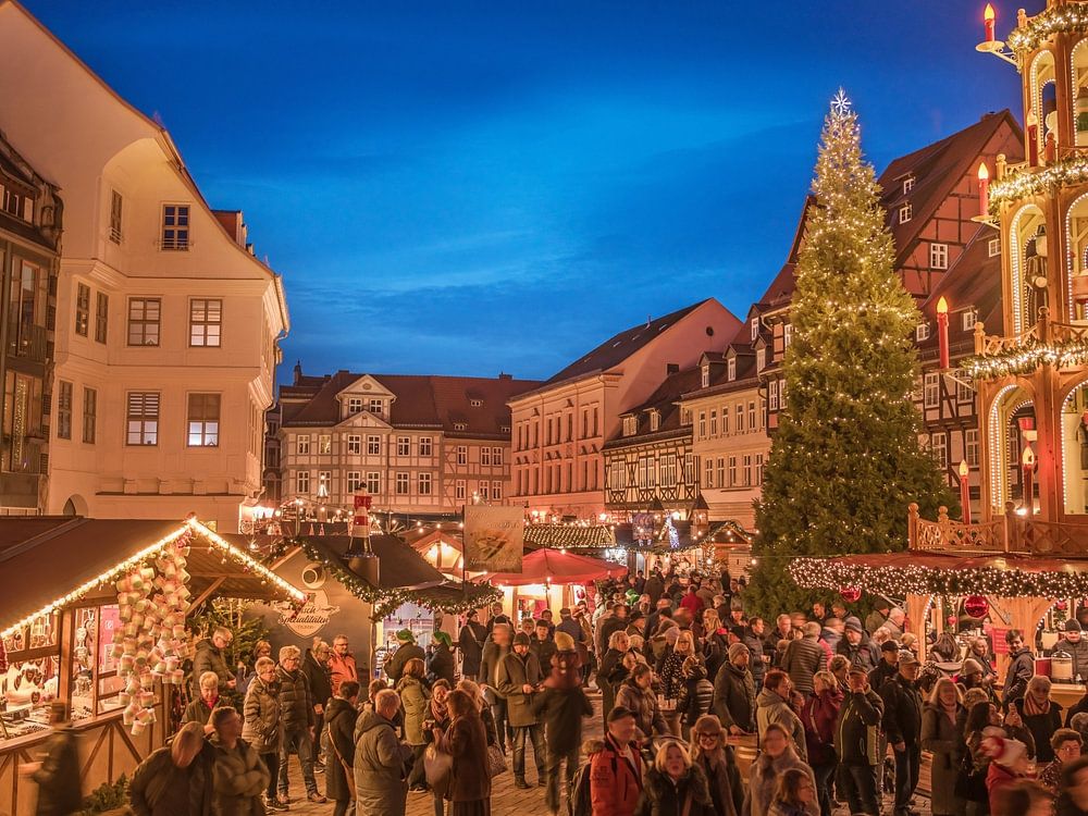 Wenn die Blaue Stunde über Quedlinburg hereinbricht, entfaltet der Weihnachtsmarkt seinen ganz besonderen Zauber – ein Moment, der in diesem Foto eindrucksvoll festgehalten ist. Sanft legt sich das tiefe Blau des Abendhimmels über die historischen Fachwerkhäuser, während tausende…