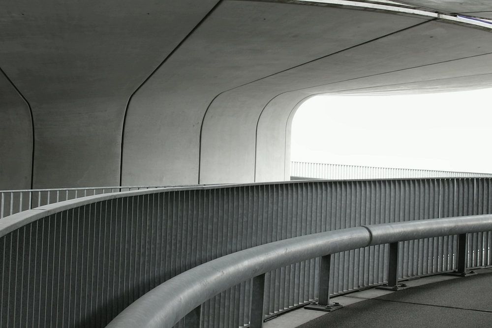 Die Formen dieses Parkplatzes in Amsterdam sind wirklich schön. Das Foto wurde an der Kurve aufgenommen, so dass die Straße durch sie hindurchführt. Eine schöne Konstruktion aus Stahl und Beton.