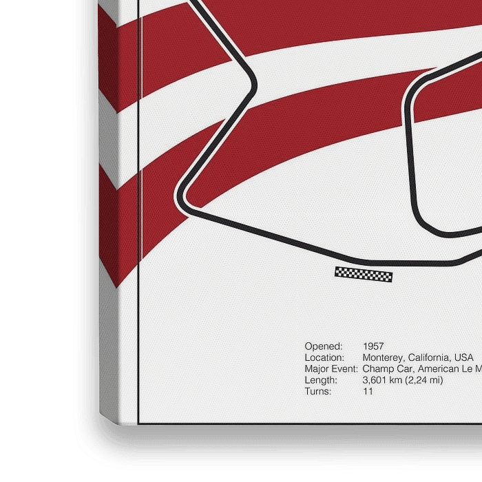 Bestelle diese Illustration Racetrack Laguna Seca von Theodor Decker als Reproduktion auf Leinwand, Alu-Dibond, als Poster, Fototapete oder Acrylglasbild.