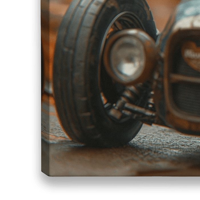Das fesselnde Bild zeigt einen Fuchs in einem Miniatur-Rennauto, der mit einem fokussierten Blick und einer offensichtlichen Entschlossenheit am Steuer sitzt. Das Tier trägt einen lebendig gemusterten Schal, der zusammen mit seiner flauschigen, rotbraunen Fellzeichnung eine natürliche Camouflage in der herbstlich gefärbten Umgebung…