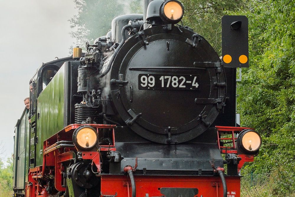 Bahnhofseinfahrt Lauterbach, Insel Rügen.