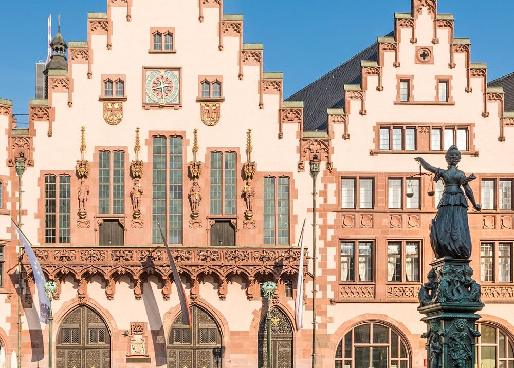 Rathaus Frankfurter Römer und Minverabrunnen, Frankfurt, Hessen, Deutschland