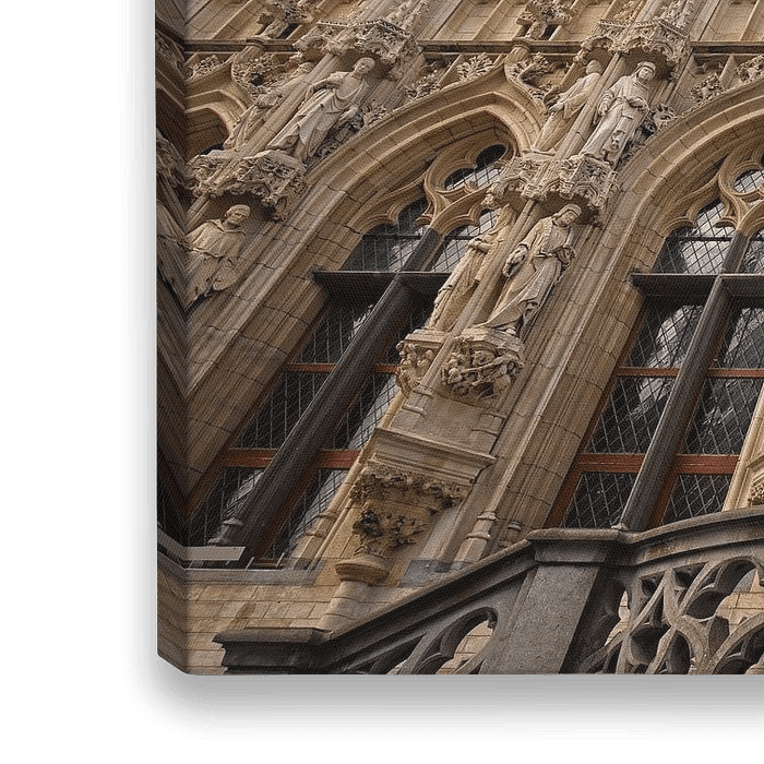 Das gotische Rathaus mit seinen zahlreichen Statuen auf dem Grand Place in Leuven (Flandern, Belgien).