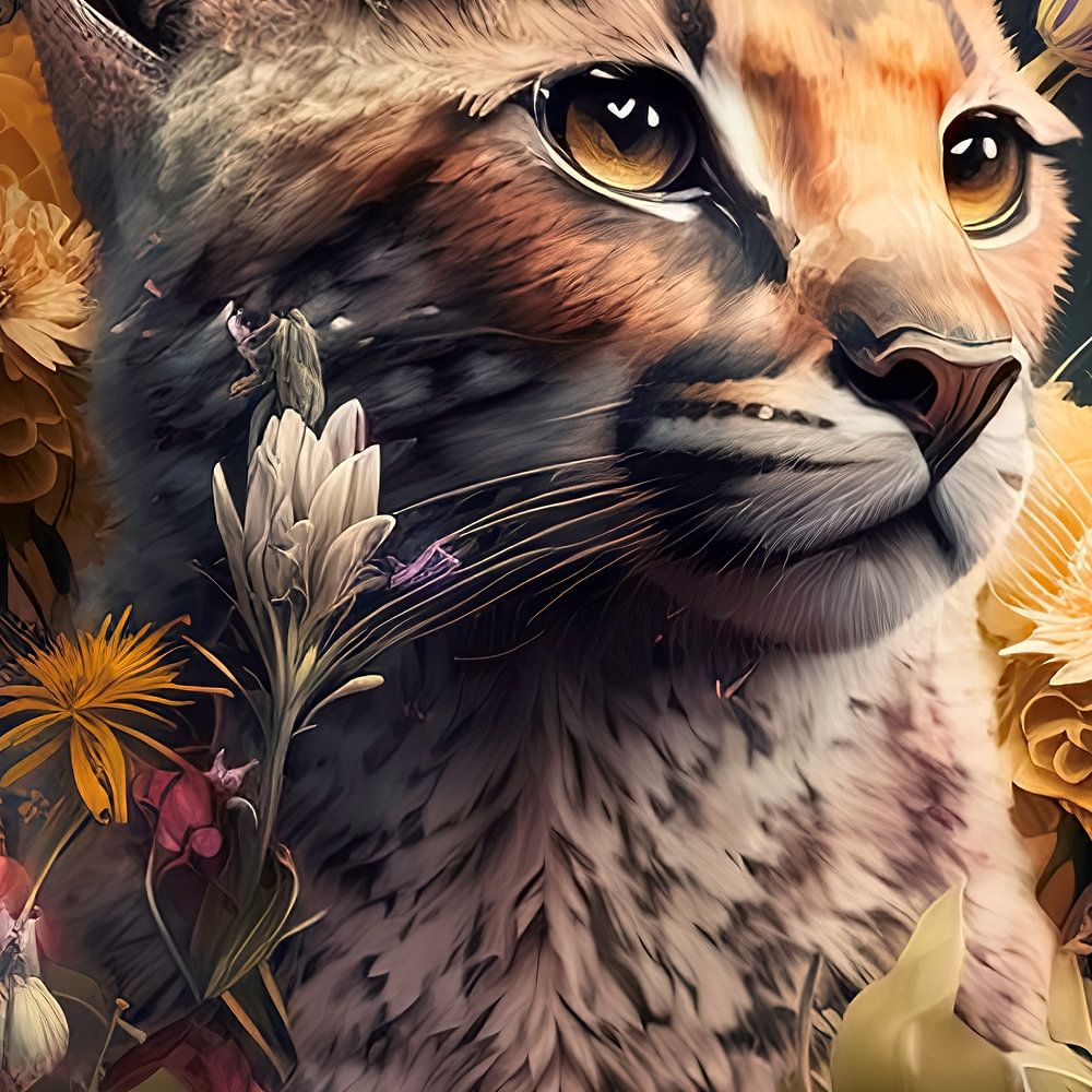 Raubtier mit Blumen. Dieses Bild wurde mit künstlicher Intelligenz (KI) erstellt.