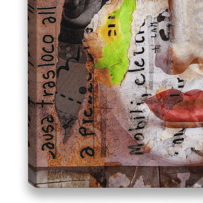Bestelle dieses abstrakte Wandbild Red lips and chaos von Gabi Hampe als Reproduktion auf Leinwand, Alu-Dibond, als Poster, Fototapete oder Acrylglasbild.