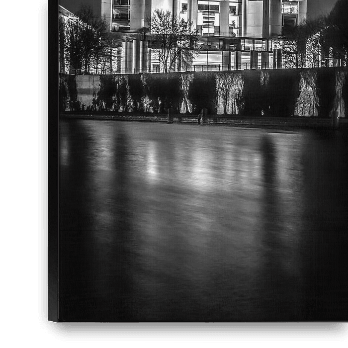 Sehr stilvoll, die Gebäude des Regierungsviertels und die glänzende Spree im nächtlichen Berlin