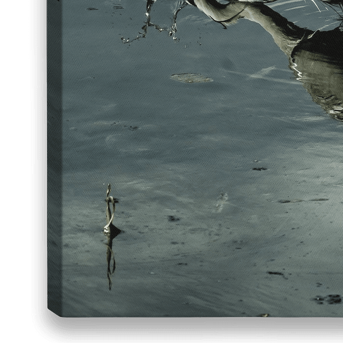 Bestelle dieses Vögel Wandbild Reiher fängt einen Fisch von Jeroen als Reproduktion auf Leinwand, Alu-Dibond, als Poster, Fototapete, ArtFrame oder Acrylglasbild, maßgefertigt in höchster Qualität.