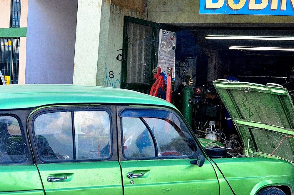 Dieser grüne Renault 4 Safari wurde am 20. März 2015 in Zipaquirá, Kolumbien, fotografiert.