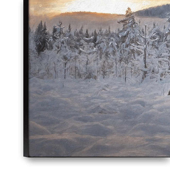 In der stillen Weite einer verschneiten Winterlandschaft, in der die Sonne den Horizont zartrosa färbt, durchbricht unerwartet ein Rentier die heitere Stille. Es ist ein Moment der reinen Freiheit - ein Tanz des Lebens inmitten von Kälte und Stille. Dieses digitale Gemälde fängt nicht nur die Schönheit der Natur ein, sondern auch den…