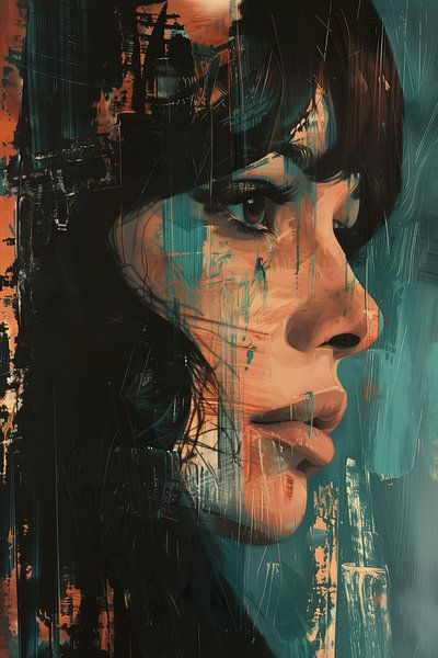 Dieses Werk ist inspiriert vom Aussehen einer Frau aus den 60er/70er Jahren. Der Blick, der dezente Eyeliner und die vollen Lippen verweisen auf den ikonischen Stil dieser Zeit. Gleichzeitig habe ich mich für einen modernen, künstlerischen Ansatz mit groben Pinselstrichen, vielschichtigen Texturen und einer Kombination aus warmen…