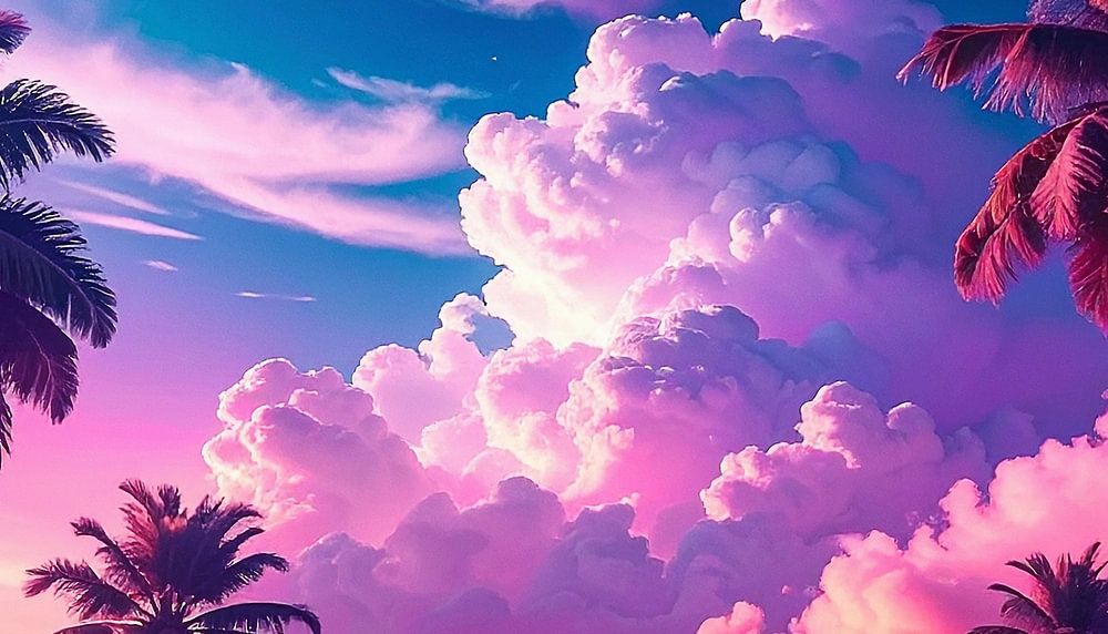 Retro Vintage Palmen mit Wolken und Blauen Himmel