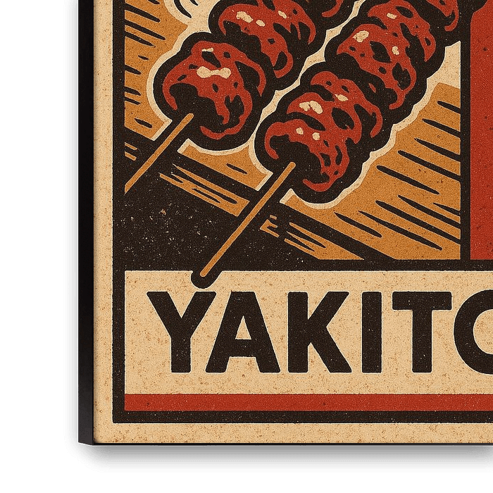 Dieses Yakitori-Poster fängt die knisternde Atmosphäre der japanischen Izakaya-Kultur in einem eindrucksvollen Retro-Pop-Art-Stil ein. Mit aufgespießten Hähnchen, die über heißen Flammen gegrillt werden, Laternen und fetten japanischen Texten verkörpert das Kunstwerk die Wärme und Energie des japanischen Straßenessens. Die erdigen Rottöne und die strukturierte Oberfläche verleihen dem Kunstwerk ein authentisches Vintage-Gefühl und machen es zu einem herausragenden Wandbild für Küchen, Essbereiche, Bars oder japanische Restaurants. Yakitori, was so viel wie "gegrilltes Hähnchen" bedeutet, ist mehr als nur Essen - es ist ein soziales Erlebnis, eine Erinnerung an Nächte, die man in gemütlichen Gassen voller Lachen, Rauch und köstlichen Aromen verbringt. Dieses Poster bringt diese Energie direkt in Ihren Raum und zelebriert sowohl die Küche als auch die Kultur. Es eignet sich nicht nur für Feinschmecker, Reisende oder Designliebhaber, sondern ist auch ein einzigartiges Geschenk. Der vielseitige und stilvolle Druck verbindet kulinarische Tradition mit kühnem Design und ist damit ein Muss für jeden, der sich für japanisches Essen und Retro-Kunst begeistert.