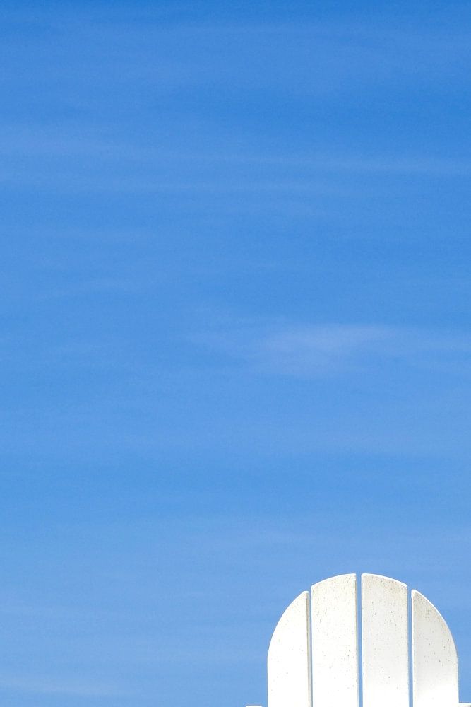 Ein abstraktes Foto eines leeren Stuhls eines Rettungsschwimmers oder einer Rettungsschwimmerin. Der blaue Himmel und der warme Farbton verleihen ihm ein sommerliches Gefühl.
