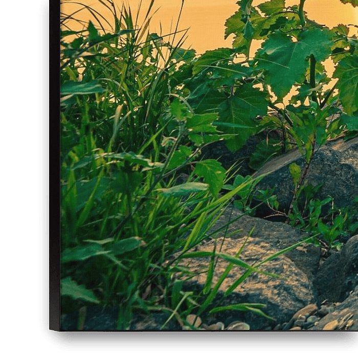 Ihre gewählte Kunst auf Leinwand, gespannt in einem Aluminiumrahmen. Schnell und einfach austauschbar für eine frische Ausstrahlung und ganz nach Ihren Wünschen.