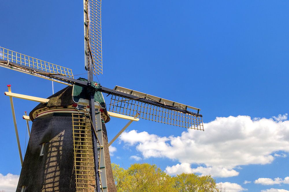 De Riekermolen aan het Amstelpark aan de Amstel in Amsterdam op een mooie lente dag met een blauwe lucht