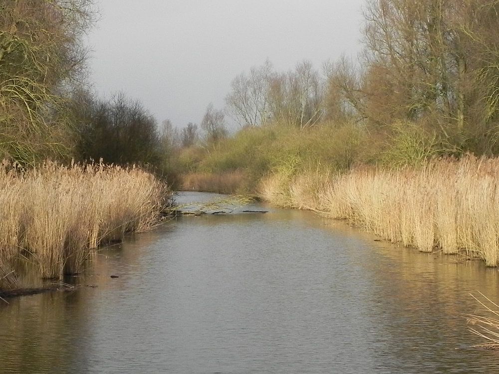 Rietkraag langs de waterkant in Flevoland. Mooie rietkraag in het landschap van Flevoland