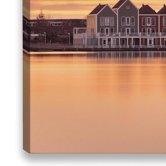 Der Rietplas in Houten, Utrecht, ist ein See, der durch Sandabbau für die umliegenden Häuser entstanden ist. Es ist ein Erholungsgebiet und bekannt für die bunten Häuserreihen, die das Ufer säumen.