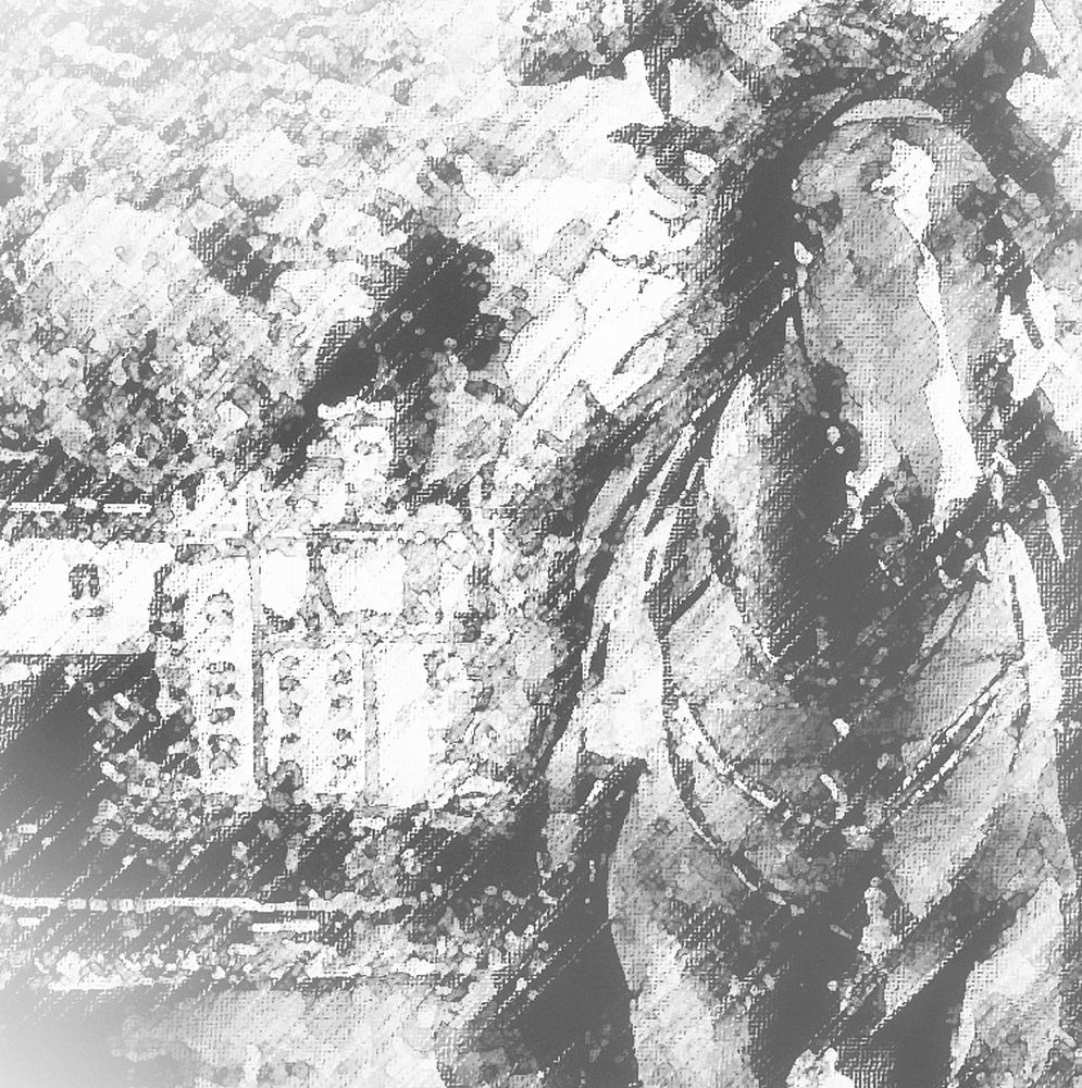 Ritter zu Pferd mit einer Festung / Burg im Hintergrund. In Zeichenstruktur und High Key