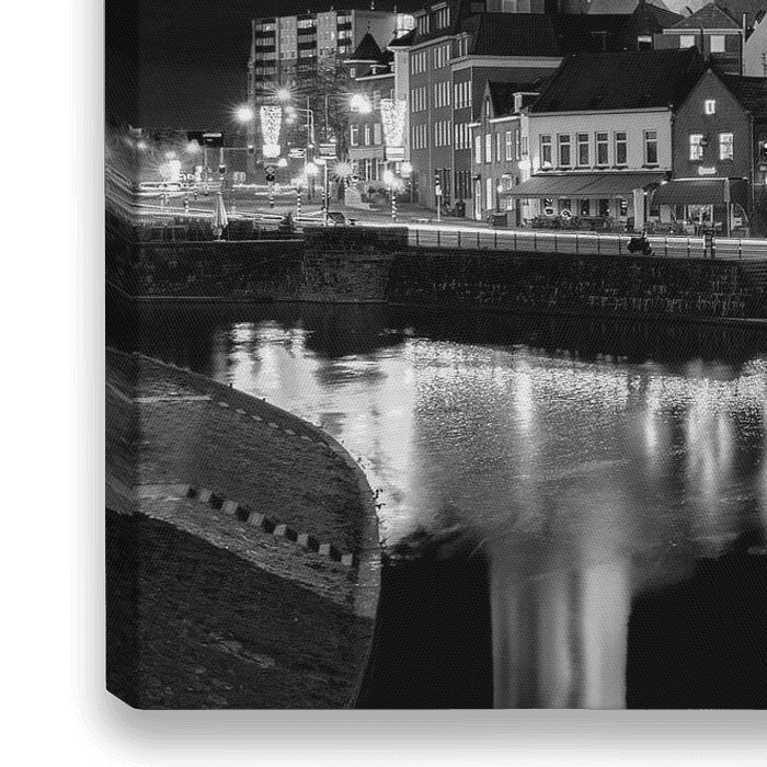 Bestelle das Foto Roermond Skyline in schwarz und weiß von Adelheid Smitt als Reproduktion auf Leinwand, Alu-Dibond, als Poster, Fototapete oder Acrylglasbild.