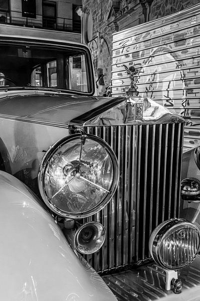 Foto Details Oldtimer Rolls Royce Wraith in Altstadt von Valencia Spanien in schwarz-weiss