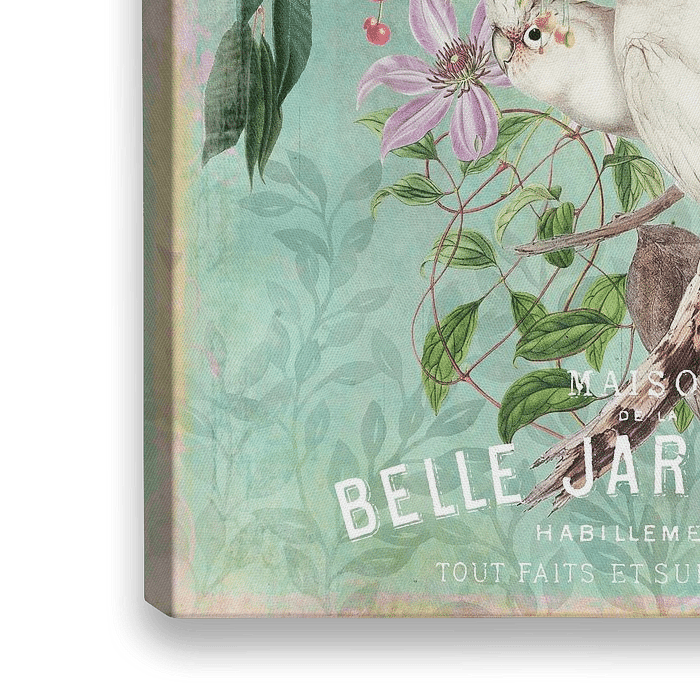 tropische Kakadu-Vögel mit Typografie, exotischen Pflanzen und Blumen auf Vintage-Hintergrund