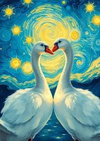 Bestelle dieses Vögel Wandbild Romantische Gans Sternennacht von MIROKKU als Reproduktion auf Leinwand, Alu-Dibond, als Poster, Fototapete, ArtFrame oder Acrylglasbild, maßgefertigt in höchster Qualität.