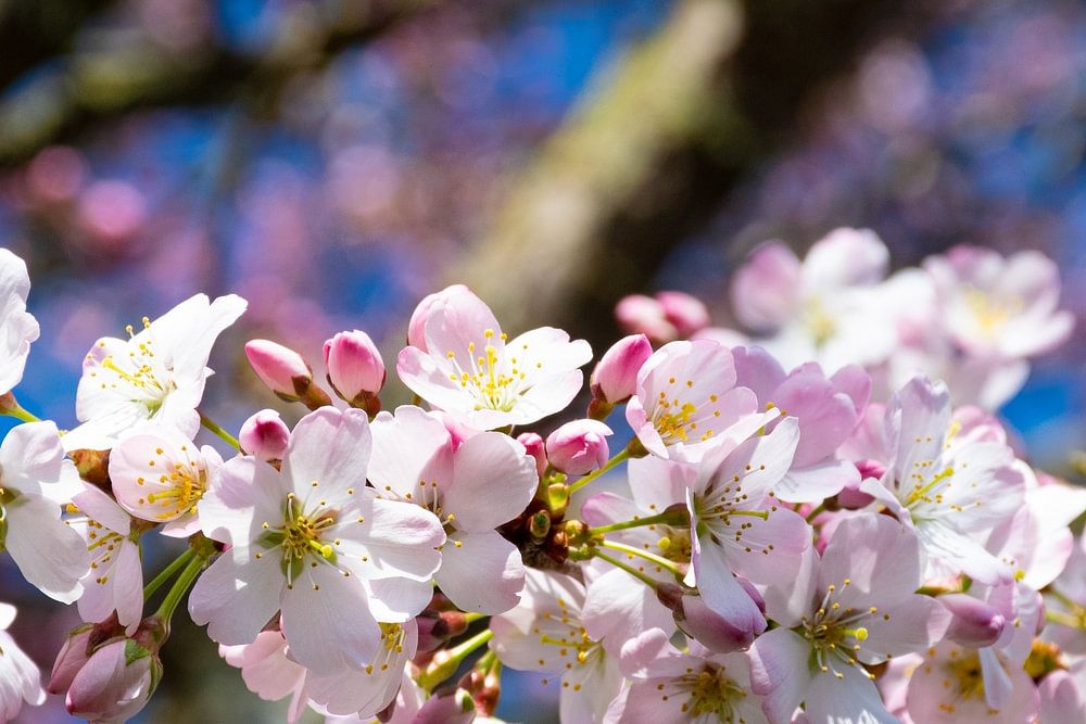 Besonders der blaue Himmel als Hintergrund macht dies zu einem sehr fröhlichen Frühlingsfoto.