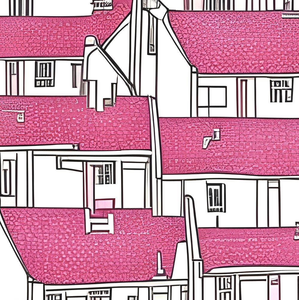 Farbenfrohe Drucke, abstrakte, figurative Illustrationen, die Häuser, Kanalhäuser aus verschiedenen Ländern und Städten darstellen.