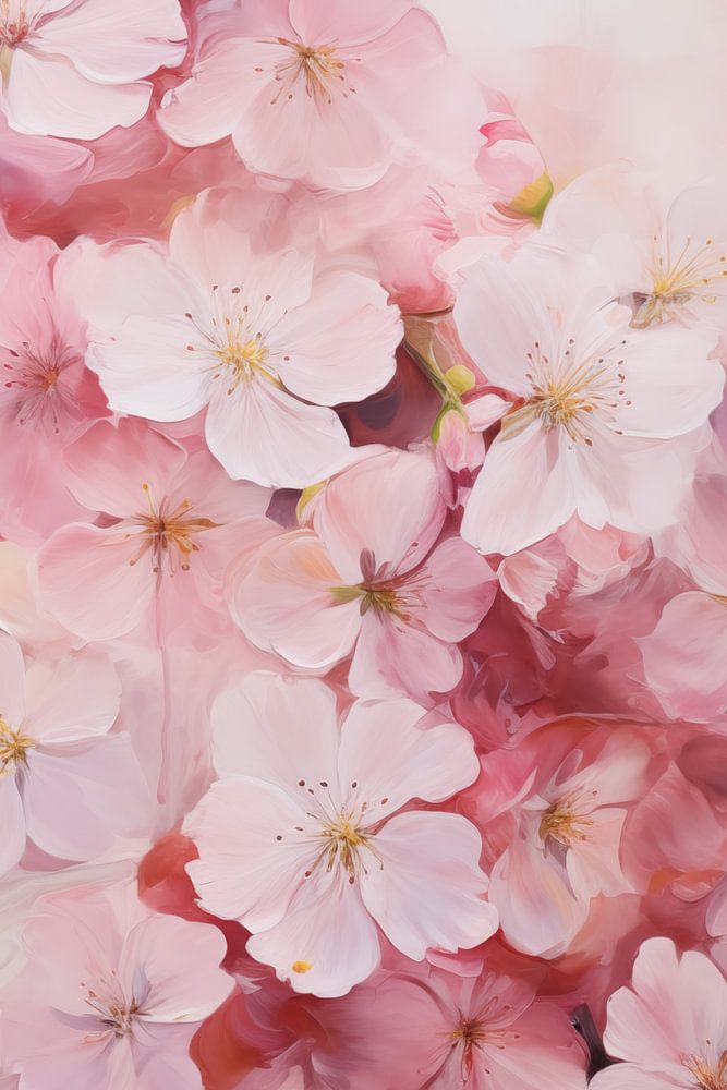 Ein bezauberndes digitales Gemälde, das die üppige Fülle der blühenden Kirschblüten einfängt. Satte Rosatöne gehen nahtlos ineinander über, wobei jede Blüte einzigartig ist und sich harmonisch in die anderen einfügt. Subtile Tropfen und Flecken verleihen dem Bild eine gewisse Dynamik, während dunkle Zweige für Kontrast sorgen.