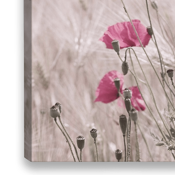 Bestelle dieses Blumen-Wandbild Rosa Mohnblumen in pastellen Naturtönen von Tanja Riedel als Reproduktion auf Leinwand, Alu-Dibond, als Poster, Fototapete oder Acrylglasbild.