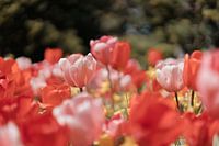 In der Frühlingssonne blühen die Tulpen auf dem Platz 1813 in Den Haag.