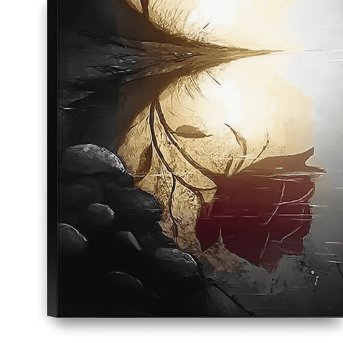 Ihre gewählte Kunst auf Leinwand, gespannt in einem Aluminiumrahmen. Schnell und einfach austauschbar für eine frische Ausstrahlung und ganz nach Ihren Wünschen.