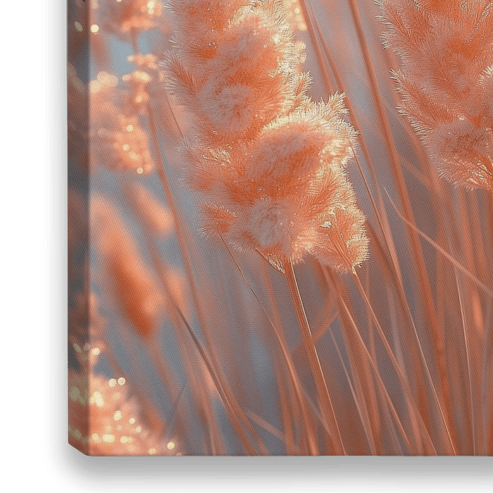Das Pampas Gras im Sonnenuntergang präsentiert eine atemberaubende Szenerie aus Eleganz und Wärme. Die langen, zarten Halme des Grases leuchten in warmen Farbtönen, von sanftem Gold bis zu einem intensiven Rosé, wenn die untergehende Sonne ihre letzten Strahlen über die Landschaft wirft. Die filigranen Blütenstände, von einem goldenen…