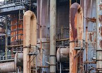 Bestelle dieses abstrakte Wandbild Rostige Komponenten einer Eisenhütte von Achim Prill als Kunstdruck auf Leinwand, Alu-Dibond, als Poster, Fototapete oder Acrylglasbild.
